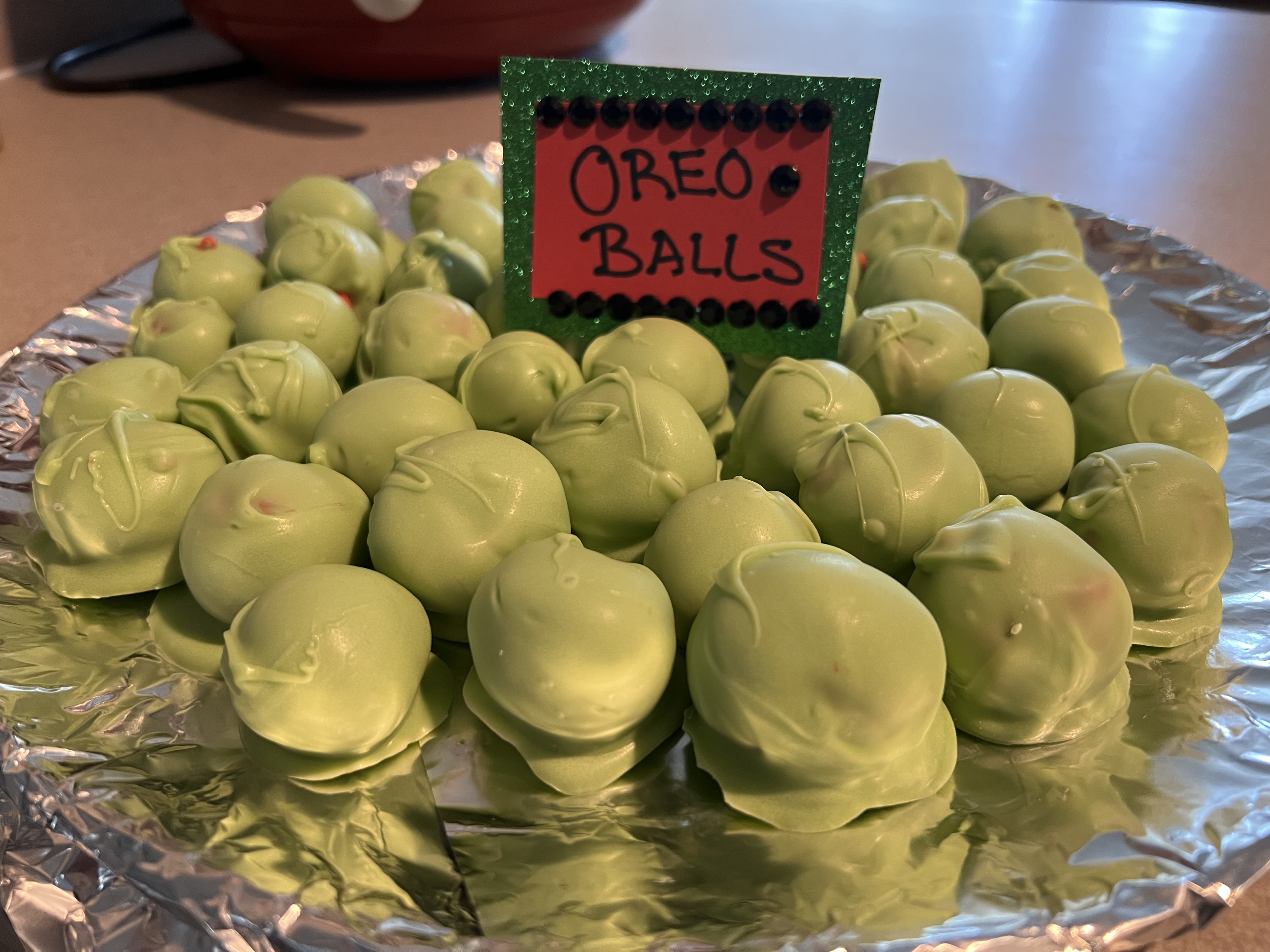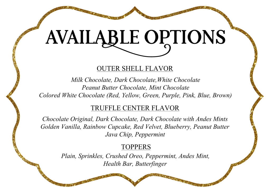 You should order your balls 2-3 weeks in advance (2 months during peak holiday seasons) and pickup/deliver within 48 hours of your event. The Oreo balls should be refrigerated them until you’re ready to serve.